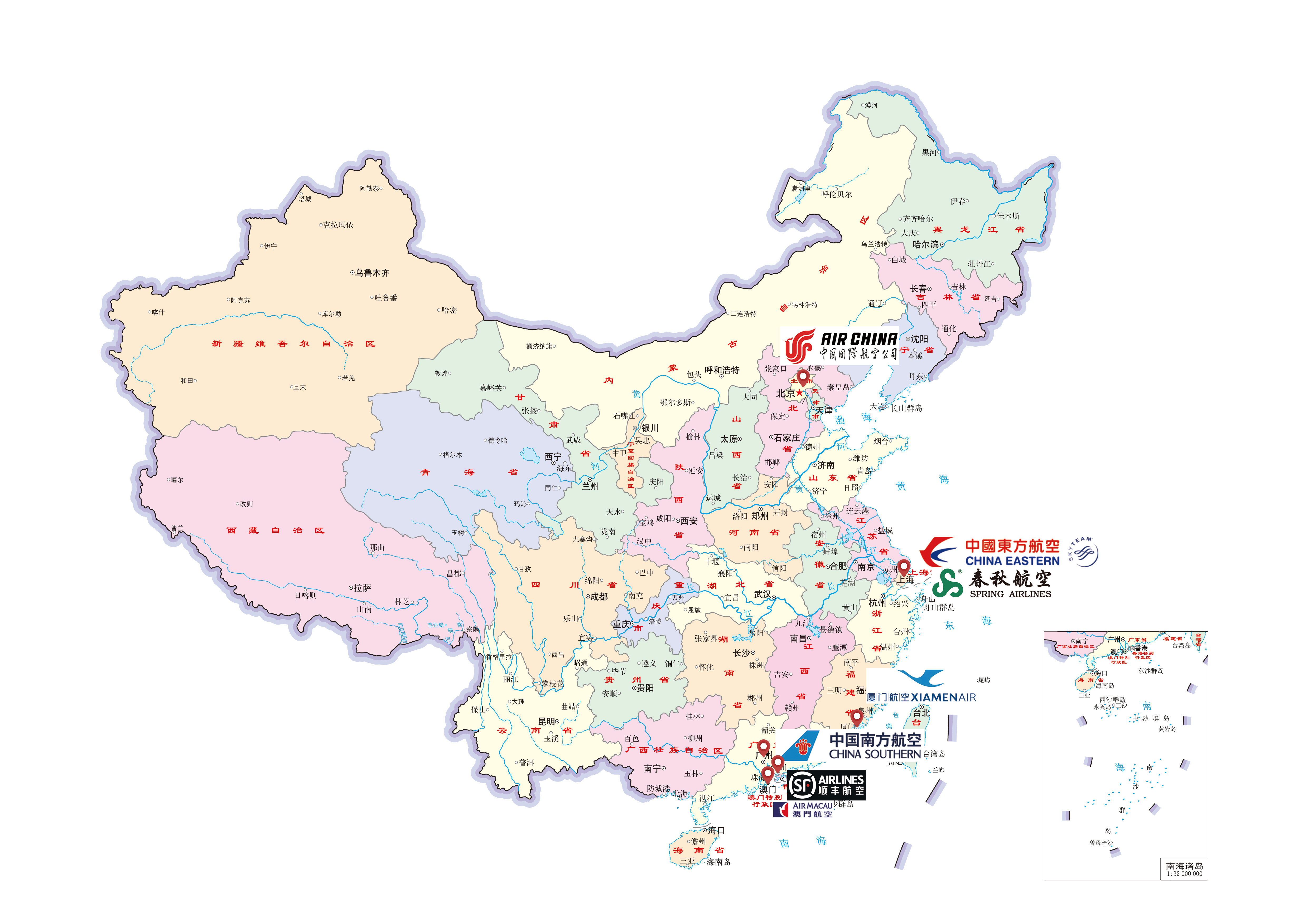 Airlines:Air China, China Eastern Air Holding Company, China Southern Airlines, Xiamen Airlines, Spring Airlines, Air Macau.