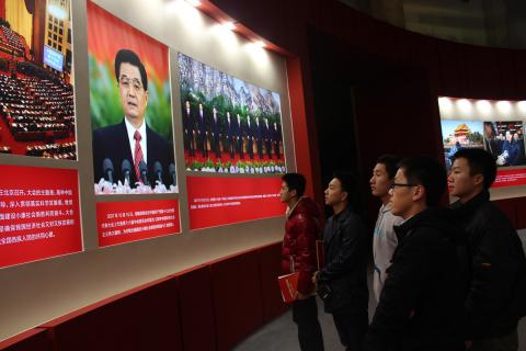 飞行学员参观“科学发展 成就辉煌”的大型图片展览
