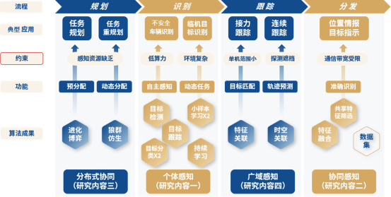 本项目产生了7类13种算法及1项数据集等成果,未来在区域安全保障等典型场景中可支撑无人机/车等构成的多智能体遂行任务规划、目标识别、目标跟踪、情报分发等任务,如图1所示。