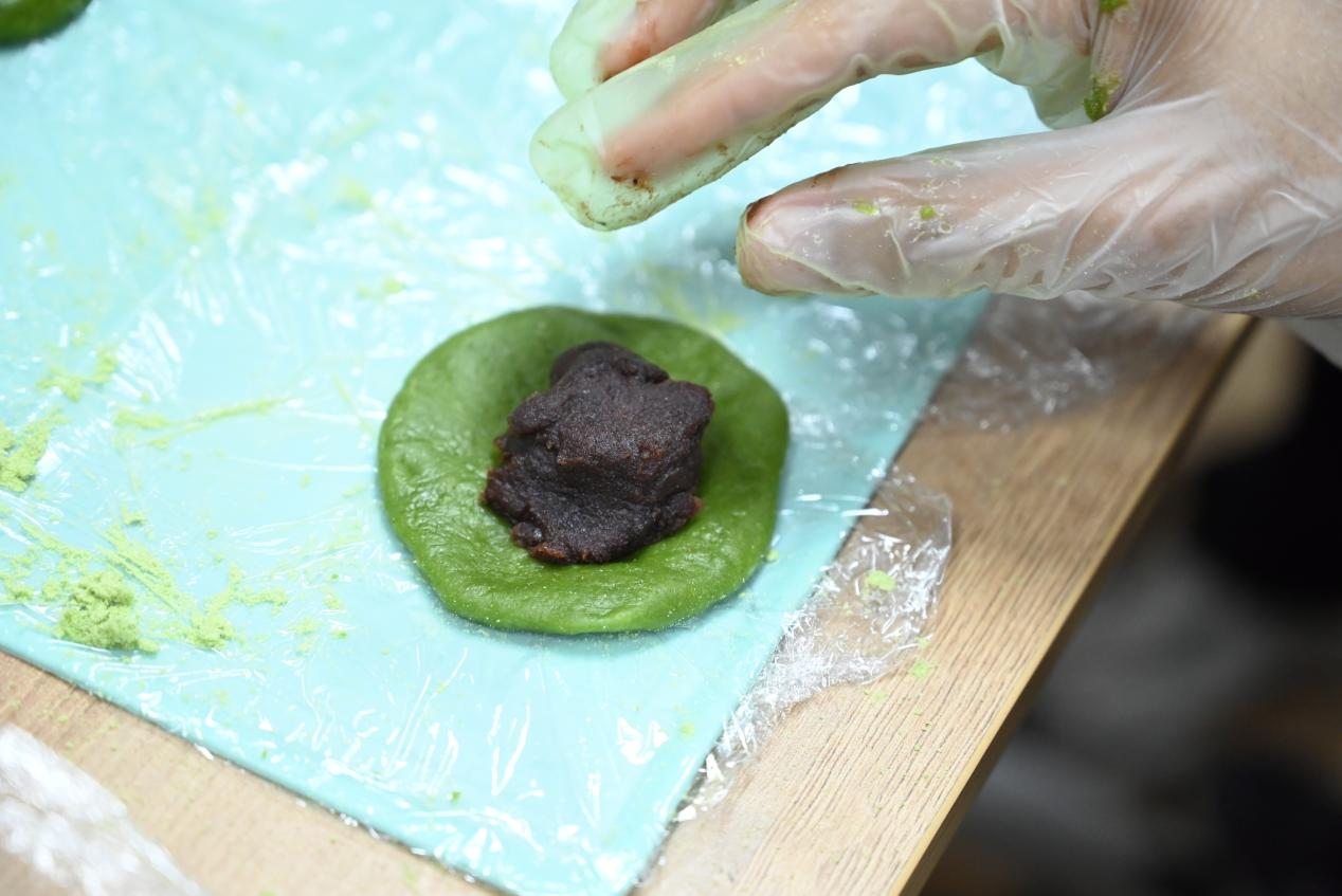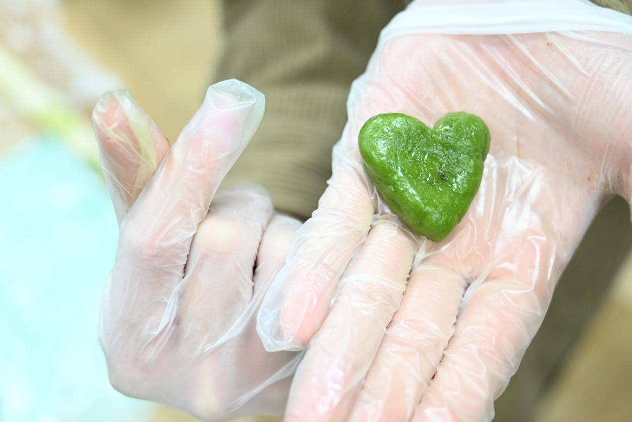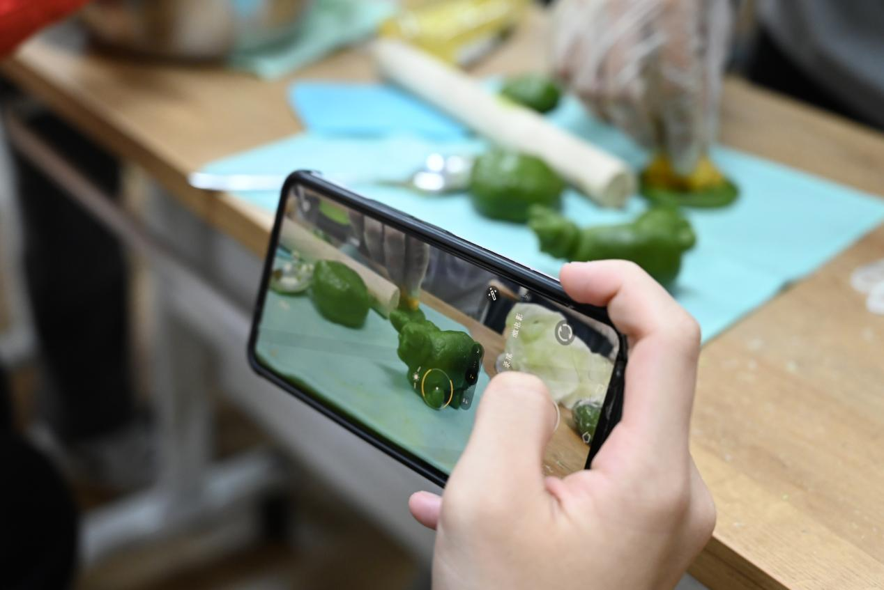 在制作过程中,小组之间互相交流,互相交换不同口味的内馅。交流之间,思维碰撞、灵感乍现,不乏同学们创新的制作造型。将自己对青团的理解加以实践,在传统中发掘了更多原创的乐趣,不仅对传统手艺推陈出新,也增进了同学之间的情谊。