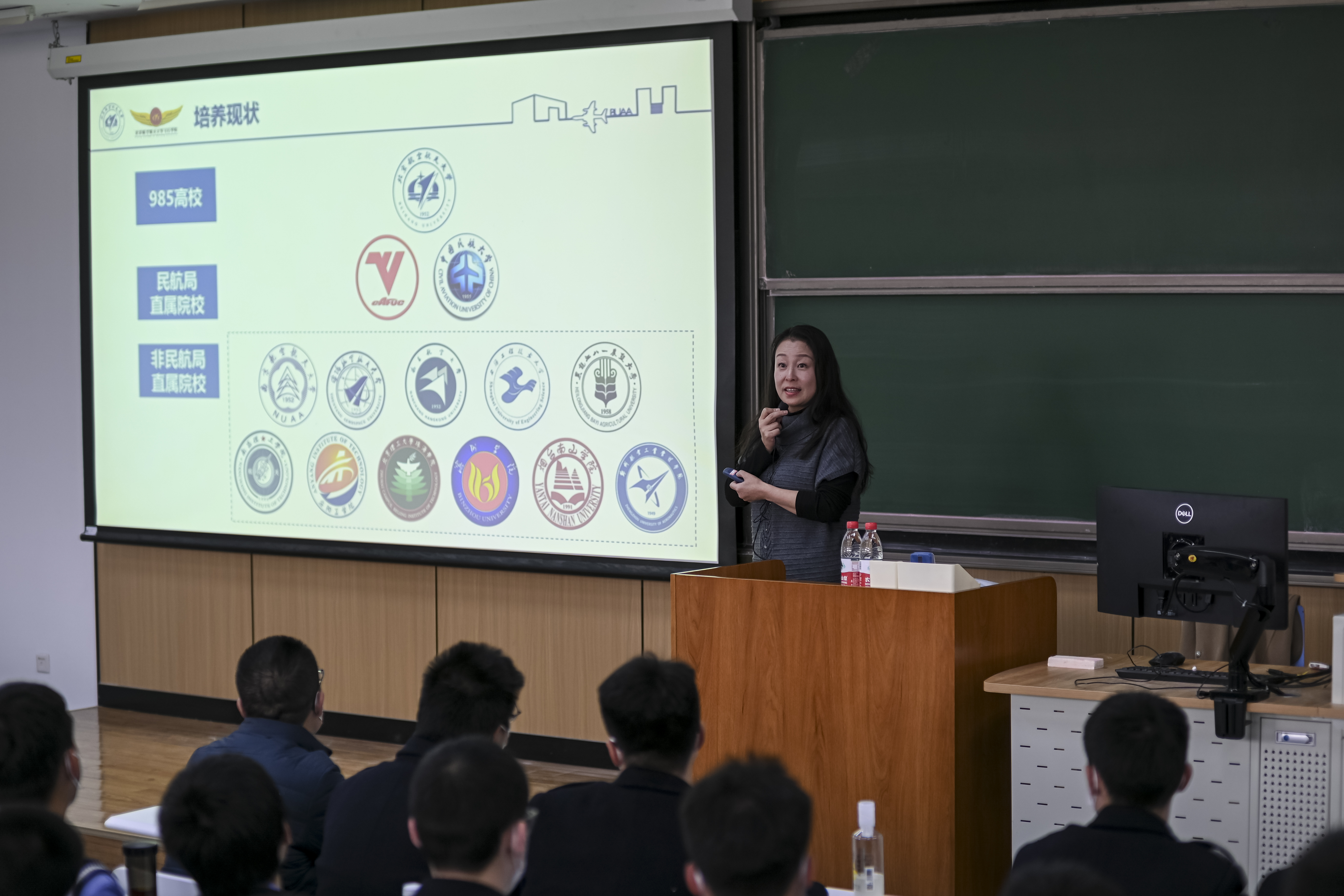 在学员们热烈的掌声中,朱颖书记上台讲话。朱书记介绍谈球吧作为国内唯一一所培养飞行技术专业人才的985高校,对飞行学员的管理标准会更高、更严,这是荣耀也是责任。朱书记结合历届飞行学员在多个平台的优秀表现,分享师兄们取得成就背后的感人故事,着重强调细节决定成败,勉励在座的大一学员要向优秀师兄看齐。