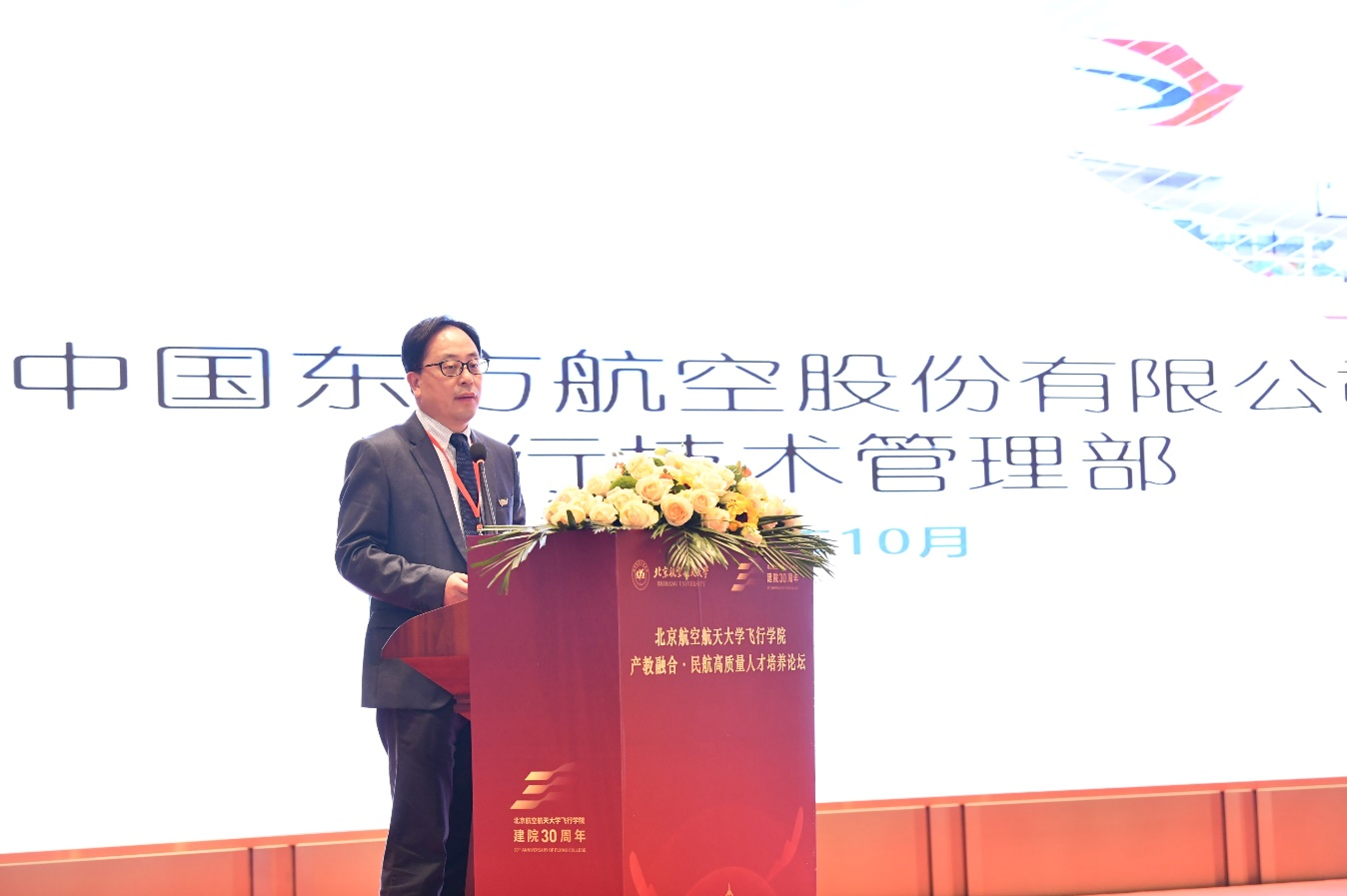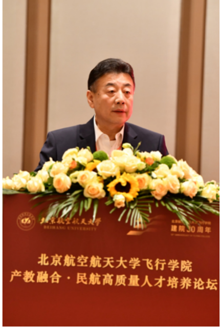 中国东方航空股份有限公司总飞行师石富康,中国国际航空股份有限公司飞行总队副总队长李向东分别致辞。他们在致辞中表达了对谈球吧官方网站建院30周年的美好祝福,回顾了航空公司与飞行学经理期以来的友好合作,展望了培养高质量飞行人才的良好愿景。