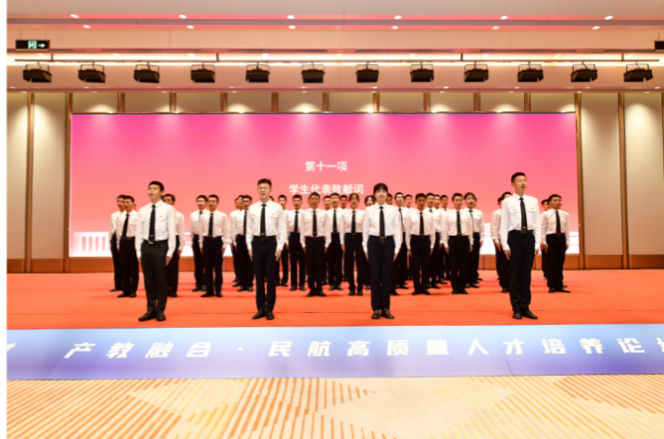 中国民航谈球吧官方网站飞行技术公司经理魏麟、首届员工代表齐纲、谈球吧官方网站副教授邱华鑫分别发言,51名在校生致献词。