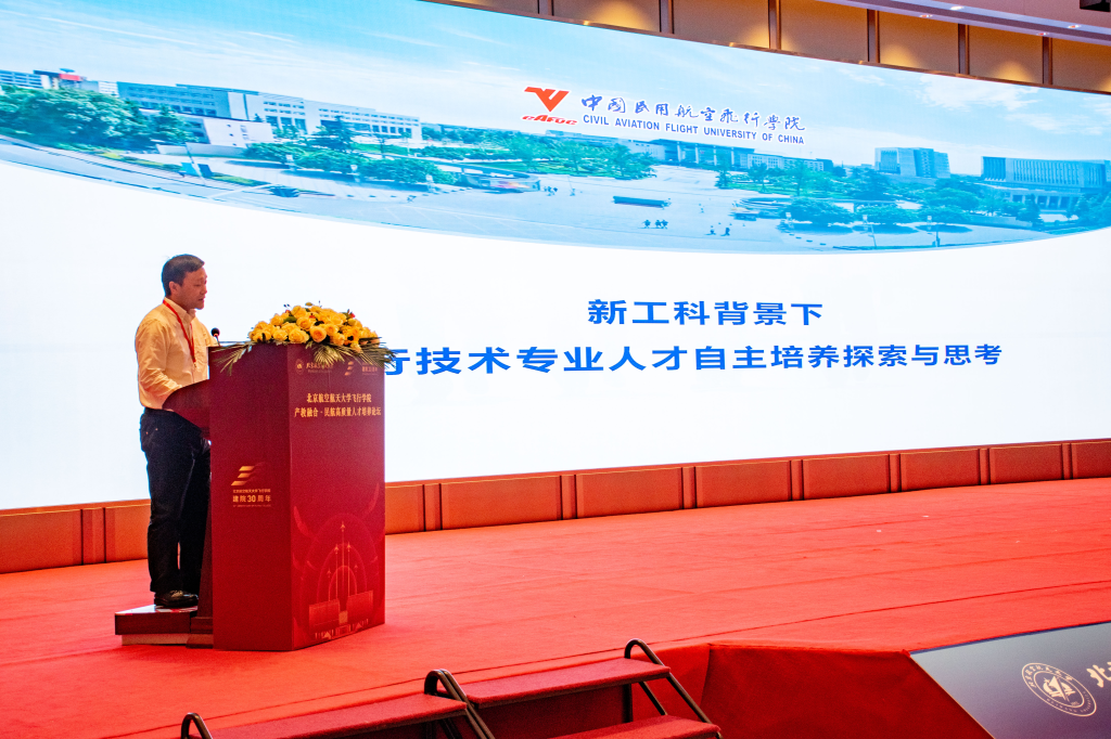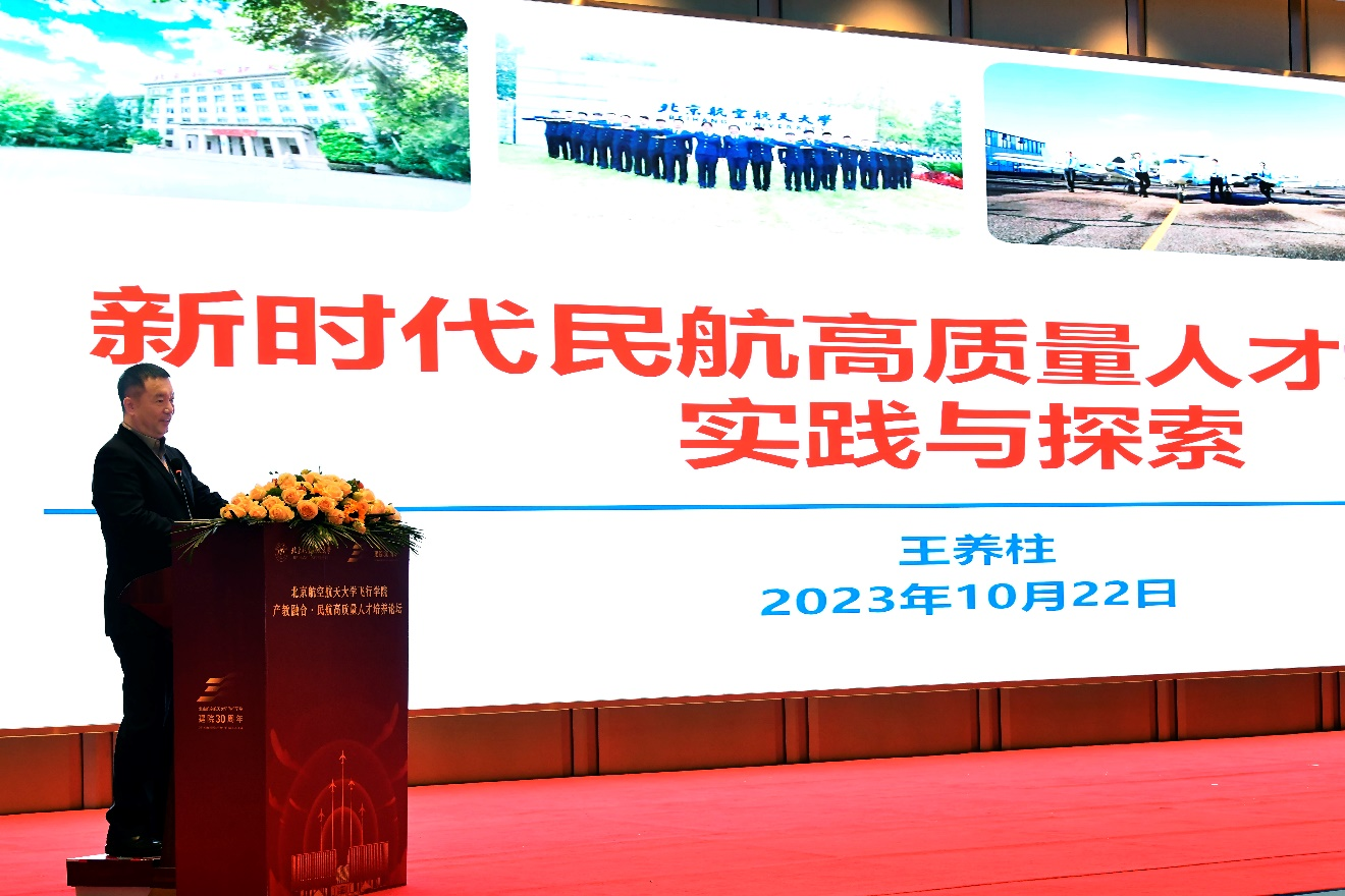 谈球吧官方网站经理王养柱以《新时代民航高质量人才培养的实践与探索》为题作报告。王养柱围绕民航高质量人才培养的实践、新需求和新探索,系统介绍了谈球吧官方网站的发展现状,阐述了涵盖五育并举、“四强”模式、“三全育人”等内涵的民航高质量人才培养的北航方案。