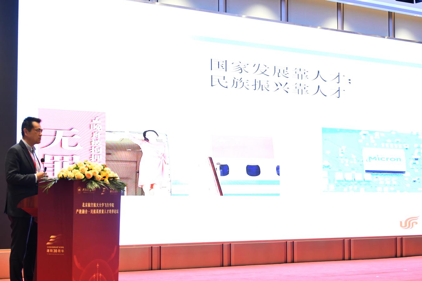 中国国际航空股份有限公司飞行技术管理部总经理张宏伟以《如何培养航空公司所需人才》为题作报告。张宏伟围绕思想作风、手册意识、沟通交流、学术研究等四个方面,结合具体案例生动讲解了飞行学员需要提升的素质能力,对培养飞行技术人才提出了意见建议。