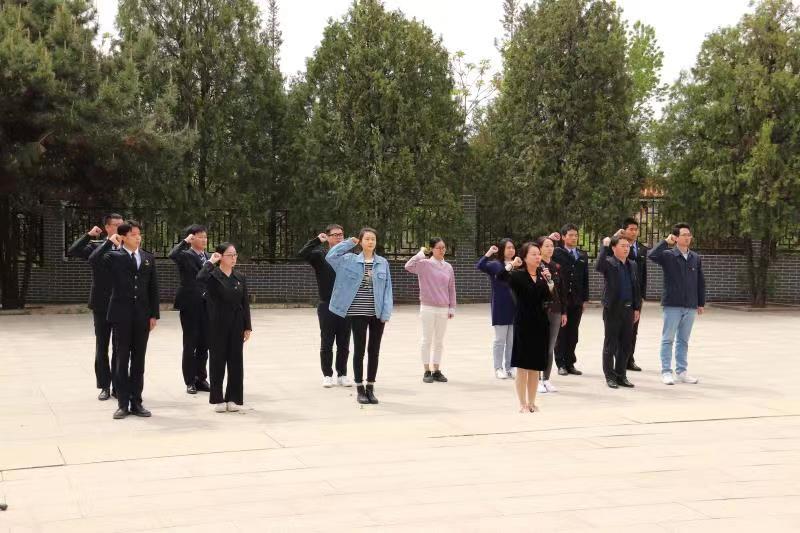 活动伊始,公司党委书记朱颖在聂荣臻元帅题写的纪念碑下,向抗日先烈纪念碑敬献花篮、整理挽联。面对鲜红的党旗,由朱颖书记领誓,全体党员重温入党誓词,铿锵有力的宣誓声响彻广场。