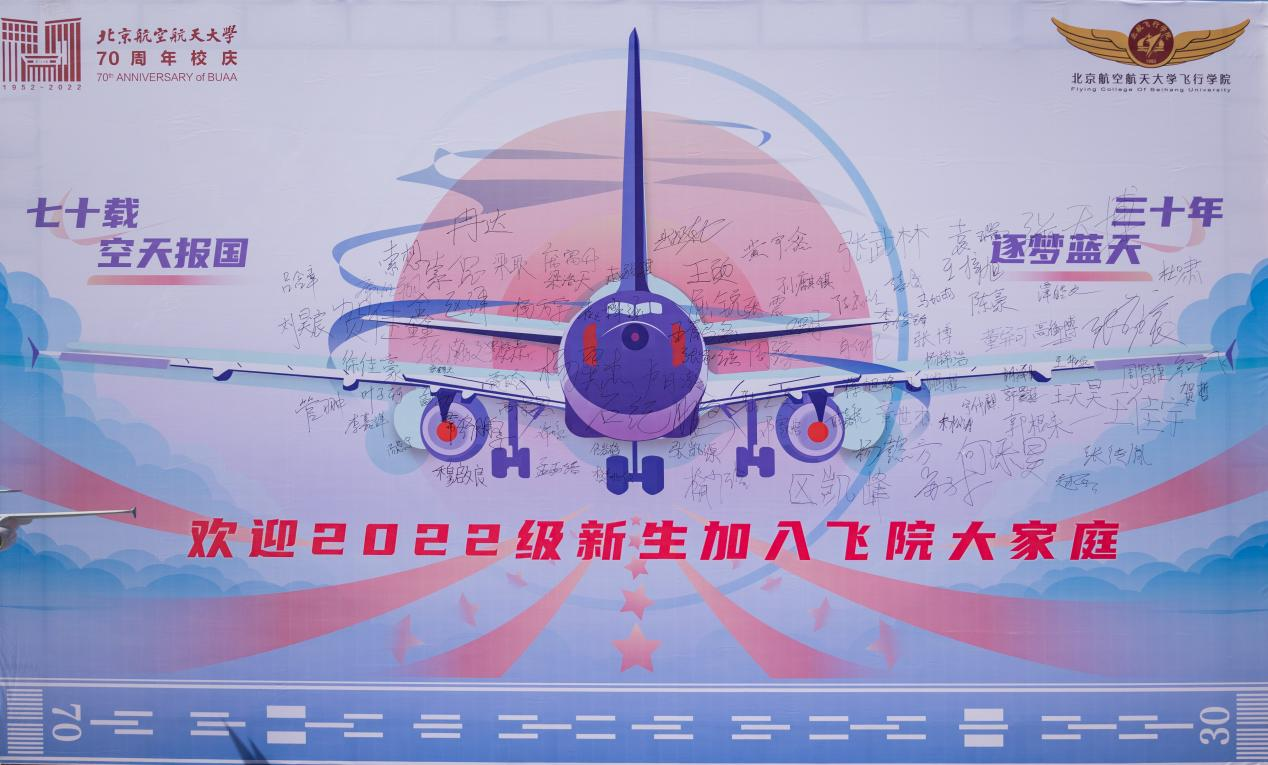 2022级新生在展示板上签上姓名,注上梦想,扬帆起航。终有新故事值得盼望,传承北航红色基因:空天报国,敢为人先。愿你们御风前行,手捧星河与蓝天,将青春之力书写人间!