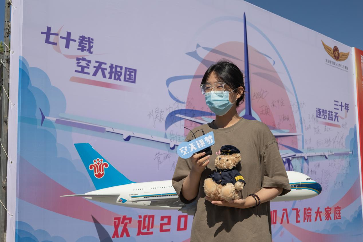 七十载空天报国,三十年逐梦蓝天。梦想向北航行,新生们站在北航2022航班前,与机长展板合影留念,感受象征责任的“四道杠”。征途漫漫,一路航行;青春慨然,梦想启航。