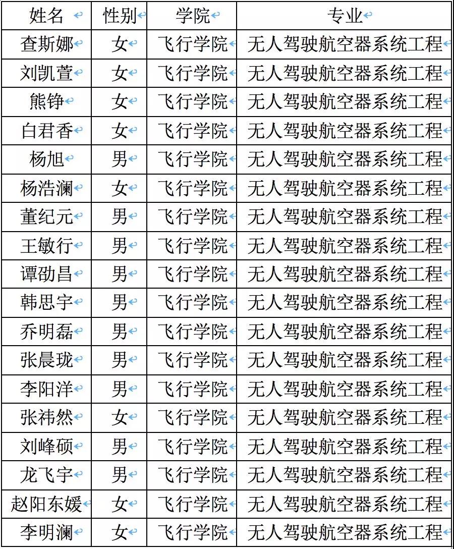 附表:2017级无人驾驶航空器系统工程专业人名单