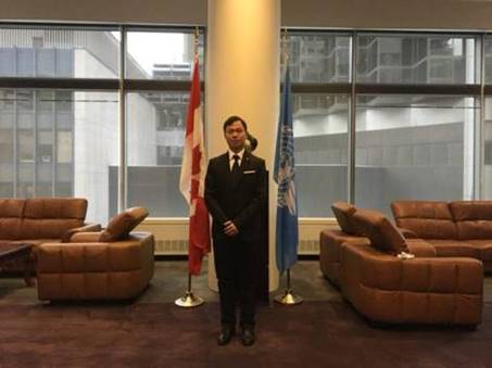 11月27日,代表团来到蒙特利尔的第二天,是ICAO-NGAP全球峰会的正式召开首日。当我们一早抵达会议地点--国际民航组织ICAO总部大楼,立即感到ICAO总部作为联合国附属机构的庄严以及ICAO-NGAP首届峰会的盛大。27日-28日的首届国际民航组织ICAO-NGAP全球峰会吸引了世界五大洲共计600余名航空领域专家学者、政府部门负责人、民航业内相关企业代表及青年员工代表团等与会共商民航业人才培养。对于参赛员工来讲,是参加ICAO-NGAP峰会的两部分内容,首先作为代表参加ICAO-NGAP峰会的大会部分,然后是作为员工辩论赛选手参加ICAO-Model的辩论环节。所以谈球吧官方网站的六名员工具有参会者的双重身份。这期间,因为网上注册的小失误,害得周天成同学颇费周折才拿到了参加全部会议的双重身份代表证。