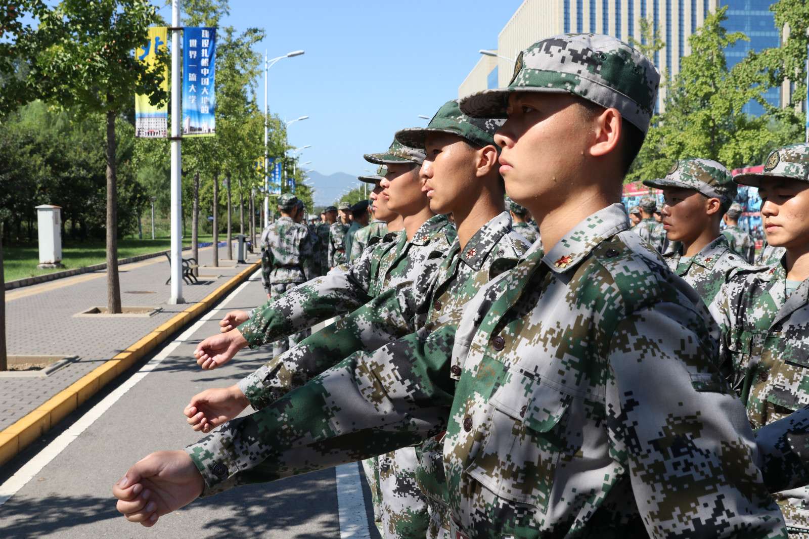 开训第二天,站军姿。不过与前几天不同的是,教官对我们近乎苛刻的要求着实是让我们吃尽了苦头。抬头、挺胸、收颚、臀收紧、手夹紧、膝盖往后压,这一系列的要求使我们不一会就大汗淋漓。眼睛直视着前方同学的帽顶,耳边是教官们的呵斥。他们的开场白是这样的:“我听说,北航谈球吧官方网站是最厉害的一个专业,我的要求不算高,干掉旁边同为谈球吧官方网站的一连,拿下第一就可以了。”听着这么使人振奋的话,也算是给我们增强了坚持下去的意志力,脚底的酸痛感似乎减轻了一点,北方的骄阳也似乎没那么残酷了。