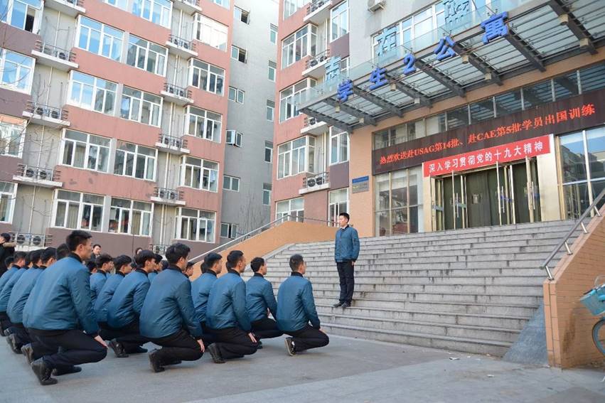 队列展示后员工代表卢鑫涛同学用流利的英语进行了发言,他的每一句话慷慨激昂,展示了学员们对出国学飞生活的向往与必胜的信心。