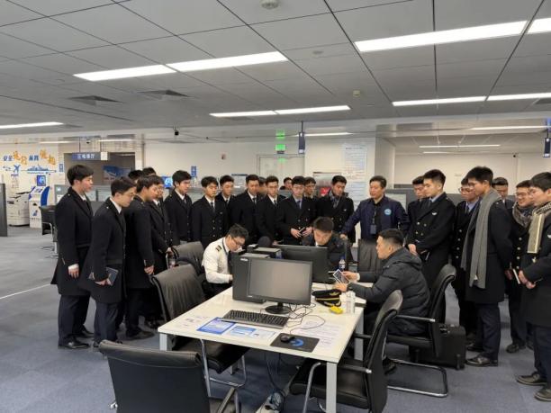 南航北京分公司运行控制中心的专业人员给同学们系统讲解了运控中心的架构与调度职能,使大家深刻体会到航班背后所需的精密协调与严谨责任。随后,同学们全程观摩了飞行机组执行任务前的完整准备流程,让大家对“飞行安全重于泰山”有了具象化理解,也见识到先进技术设施在保障航班安全中的关键作用。