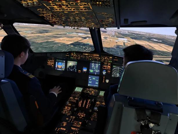飞行模拟机体验环节,同学们在高度仿真的模拟驾驶舱内亲手操纵设备,尝试完成起飞与降落。沉浸式操作不仅带来了飞行乐趣,更让他们直观认识到,课本理论知识要转化为保障安全的本领,离不开千锤百炼的练习,模拟机旁“勤于练习、保障飞行安全”的标语也让大家感触深刻。