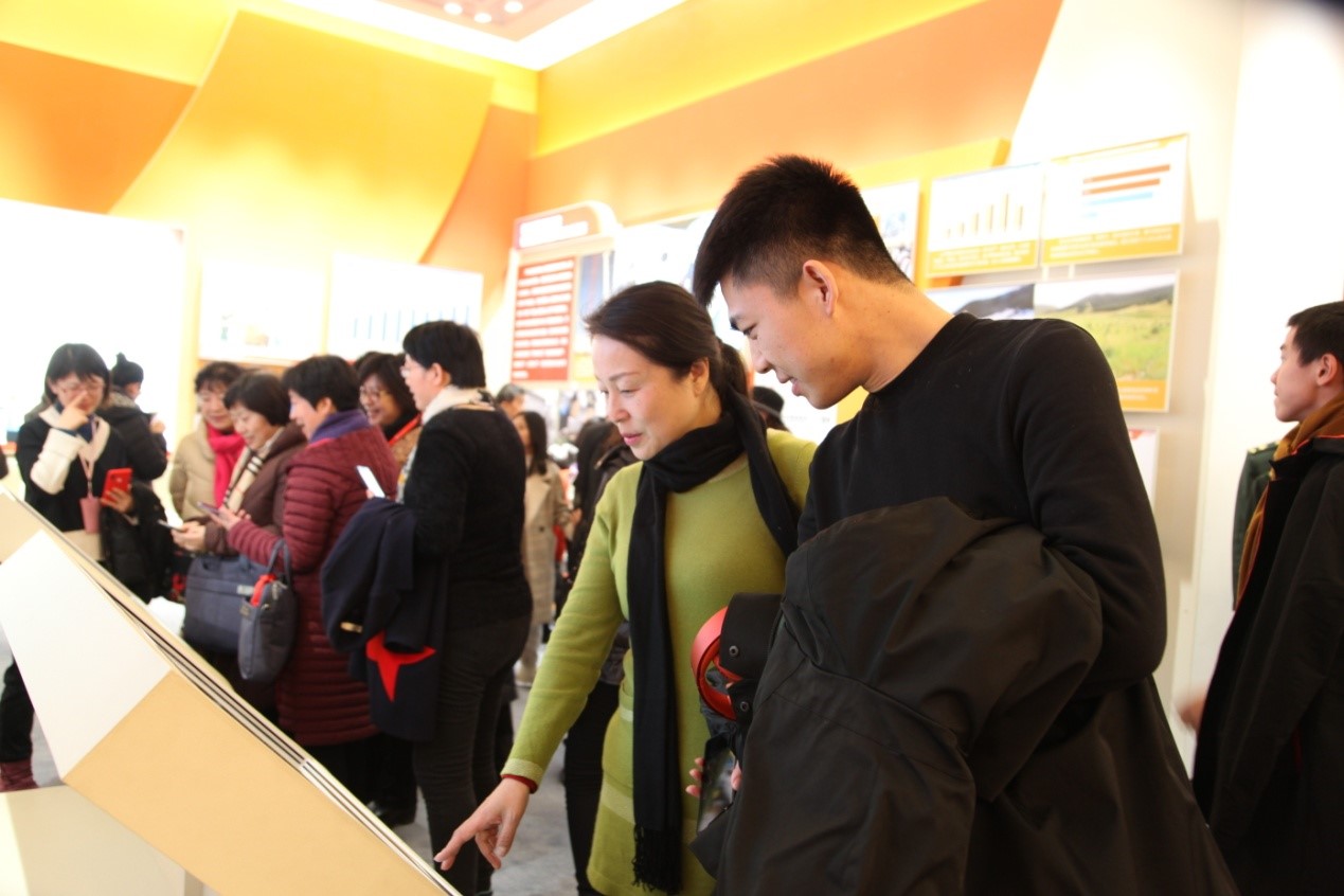 进入展厅,开篇视频《伟大的变革》描绘了中国人民用双手书写了国家和民族发展的壮丽史诗,成功吸引了许多观众驻足观看。从安徽小岗村18位农民按下包产到户“红手印”的雕塑到展现深圳从当年落后的小渔村成为现代化大都市的视频,从上海陆家嘴高楼林立的实景沙盘到国际热核聚变实验堆,从长征系列运载火箭到蛟龙、海龙、潜龙“三龙兄弟”深海探测装备,从“天宫二号”空间实验室到嫦娥三号号月球探测器,从“可上九天揽月”到“可下五洋捉鳖”,一个个实物模型,生动讲述了40年来,尤其是党的十八大以来,中国经济社会发展的历史跨越,见证了40年来民众获得感、幸福感、安全感的大幅提升。40年众志成城,40年砥砺奋进,40年春风化雨,40年来经济建设、政治建设、文化建设、社会建设、生态文明建设历史性成就与变革的实物和资料,印证了正是在中国共产党坚强领导下,中国人民用双手书写了国家和民族发展的壮丽史诗。